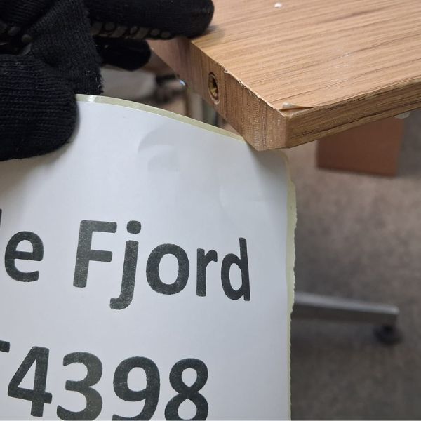Uszkodzona okleina na rantach blatu.