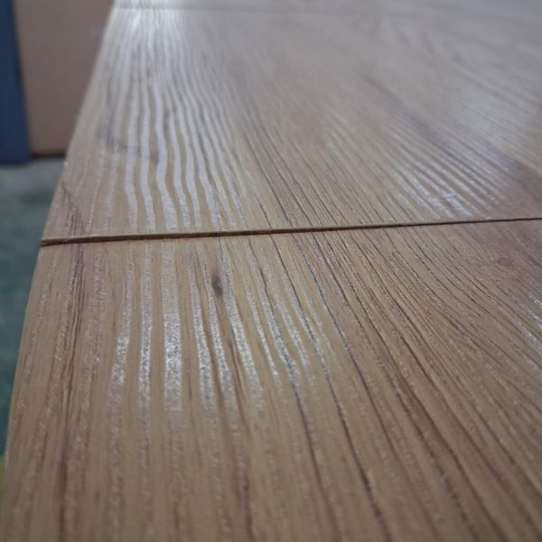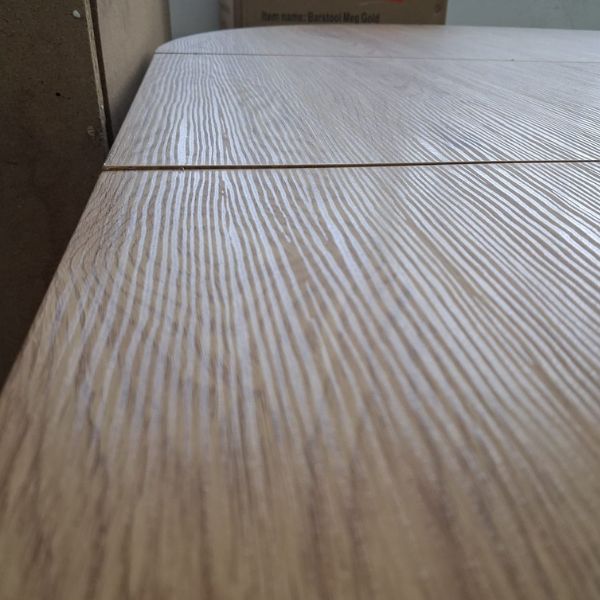 Stół posiada delikatne przetarcie na blacie i nierówne łączenia blatu.