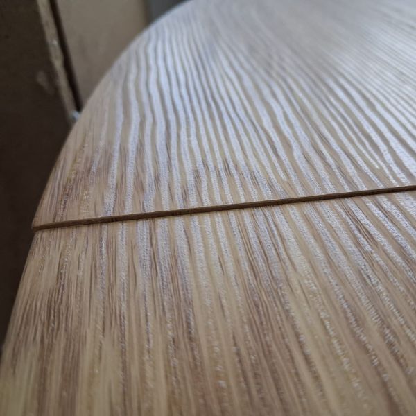 Jego wyjątkowość tkwi w szczegółach, a noga stołu jest znakomitym przykładem tego unikalnego wzornictwa. Została wykonana z precyzyjnie ułożonych lamelek. Na blacie widoczne są piękne słoje, nadające stołowi naturalny charakter i urok.
