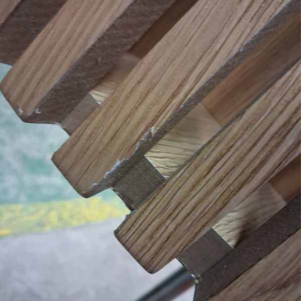 Jego wyjątkowość tkwi w szczegółach, a noga stołu jest znakomitym przykładem tego unikalnego wzornictwa. Została wykonana z precyzyjnie ułożonych lamelek. Na blacie widoczne są piękne słoje, nadające stołowi naturalny charakter i urok.