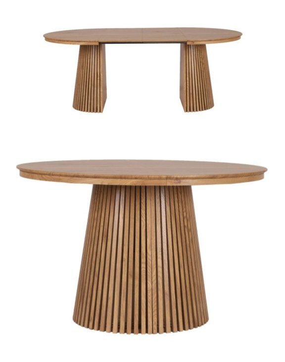 Stół rozkładany, okrągły Fjord z lamelami marki Avida Design to wyjątkowy mebel w stylu skandynawskim, loftowym oraz boho.