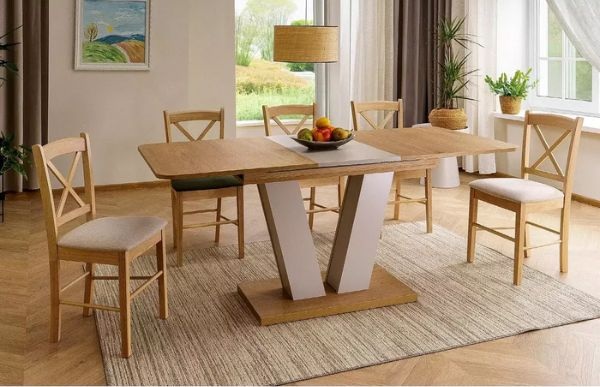 - Dzięki funkcji rozkładania w kilka chwil powiększysz blat – idealnie sprawdzi się zarówno na codzienne posiłki, jak i rodzinne uroczystości czy spotkania ze znajomymi.