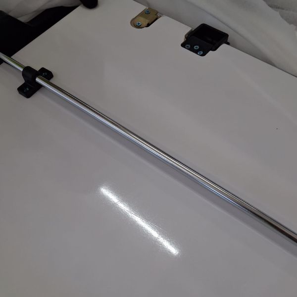 Tworzą go dwie metalowe nogi pomalowane na biało z metalowym elementem w środku.