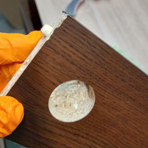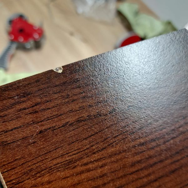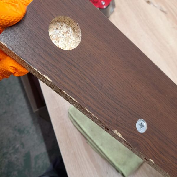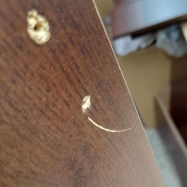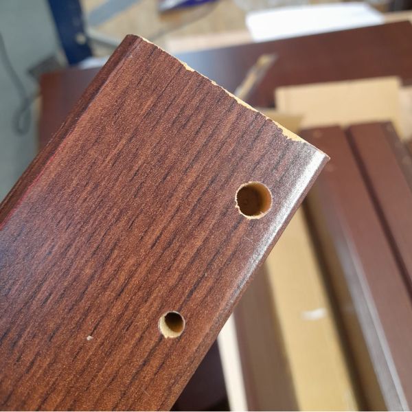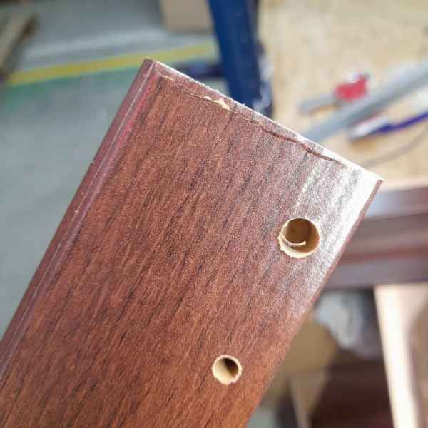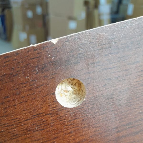 Porysowane części, wyszczerbienia przy krawędzi otworów. Zdjęcie uszkodzeń poniżej: