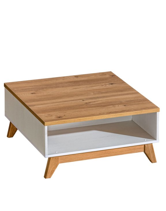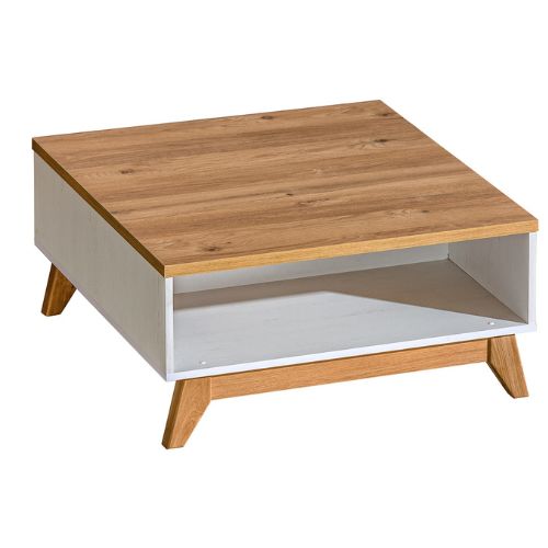 Stolik kawowy Sven idealnie uzupełni wystrój salonu. Połączenie naturalnego dekoru dąb nash z elegancką sosną andersen nadaje całości lekkiego i przytulnego charakteru.