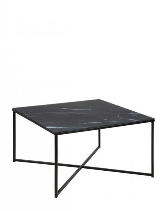 Nowoczesny w formie kwadratowy stolik kawowy Alisma marki Actona na czarnej podstawie.