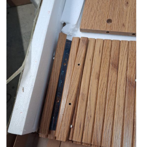 Szafka posiada przetarcia na bokach i uszkodzone lamele.