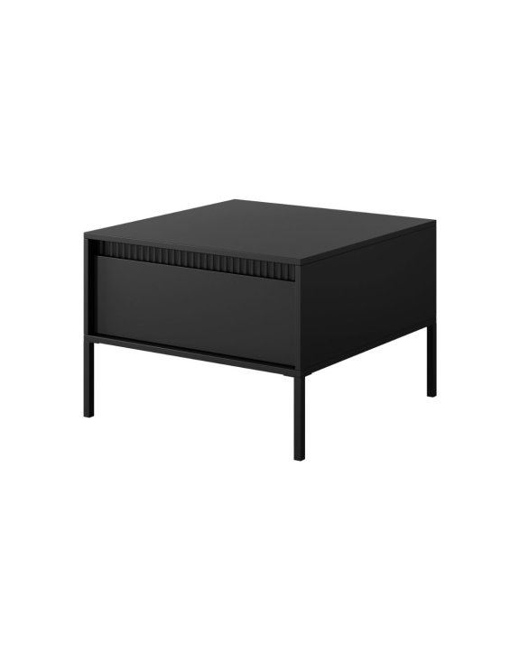 Szafka RTV Senso D w głębokiej czerni to elegancja i funkcjonalność w jednym. Dwa pojemne schowki z systemem push-to-open, ryflowany detal i solidne metalowe nogi tworzą wyjątkowo stylowy mebel do salonu.