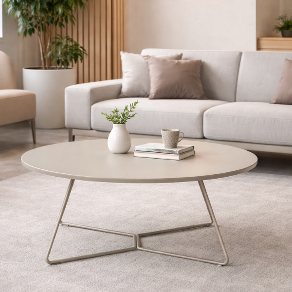 Okrągły blat o średnicy 800 mm zapewnia wystarczającą przestrzeń na kawę, dokumenty czy dekoracje, a jego wykończenie z melaminy gwarantuje odporność na codzienne użytkowanie.