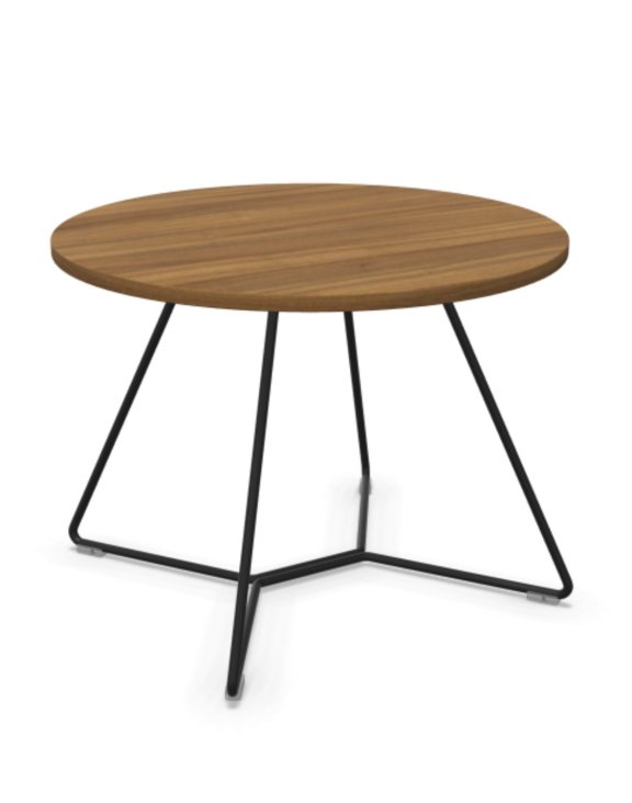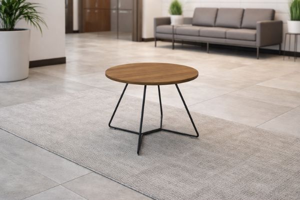 Dzięki lekkiej wizualnie konstrukcji i okrągłemu blatowi idealnie sprawdzi się jako stolik pomocniczy w strefach lounge, recepcjach czy salonach.