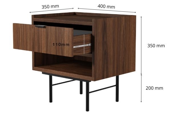 Stolik nocny Edison Brown Warmia Walnut to doskonałe połączenie elegancji, funkcjonalności i solidności – idealny partner do Twojego łóżka.