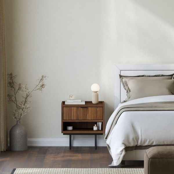 Stolik nocny Edison Brown Warmia Walnut to doskonałe połączenie elegancji, funkcjonalności i solidności – idealny partner do Twojego łóżka.