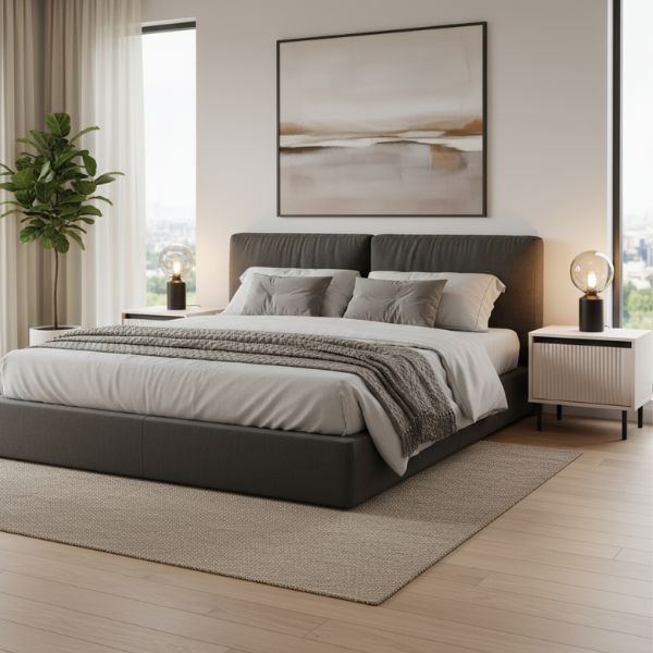 Stolik nocny Osaka doskonale prezentuje się zarówno jako pojedynczy mebel, jak i w duecie po obu stronach łóżka, tworząc spójną i harmonijną przestrzeń wypoczynkową.
