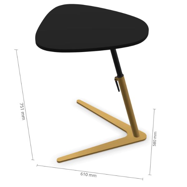 Regulowana wysokość zapewnia dopasowanie stolika do potrzeb, idealnie sprawdzając się jako pomocniczy blat do pracy z laptopem, prowadzenia rozmów czy chwil relaksu.