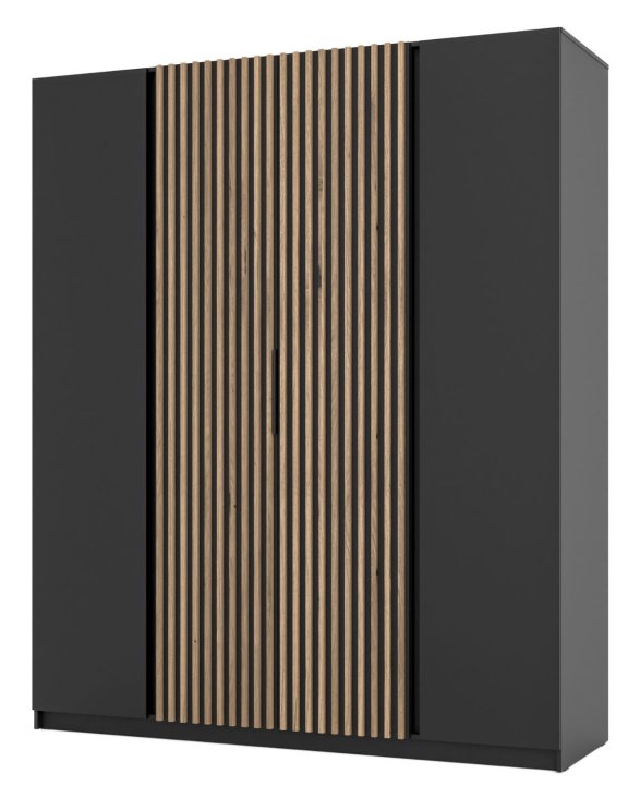 Nowoczesny design – korpus w kolorze czarnym, drzwi środkowe lamele w kolorze dąb Evoke, drzwi zewnętrzne czarne