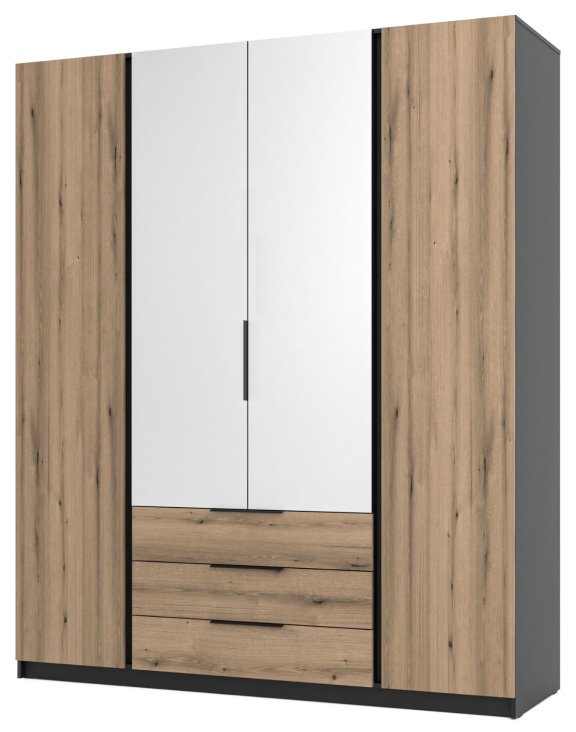 | Szafa 4-drzwiowa z lustrami i szufladami Kaja Dąb Evoke, Czarny Korpus (BL/EV, 2F 2 lustro 3S) | 2419 zł |
