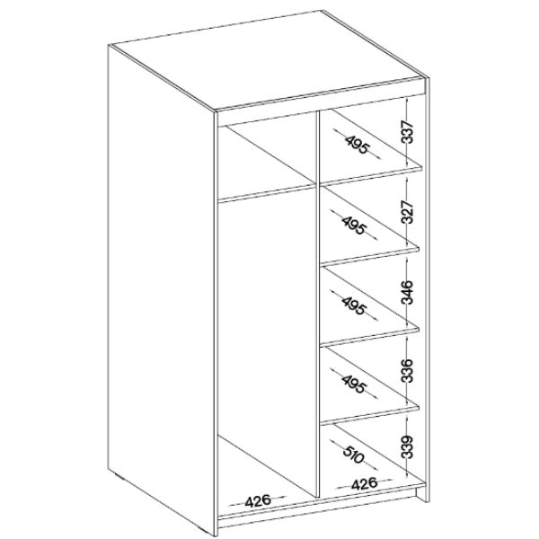 Dzięki pojemnemu wnętrzu z półkami i drążkiem na ubrania, szafa Elena 2D pomoże Ci utrzymać porządek i harmonię w sypialni, przedpokoju lub pokoju młodzieżowym.