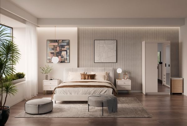 Naturalny dekor beż piaskowy nadaje wnętrzu ciepły, nowoczesny charakter, a minimalistyczna forma sprawia, że szafa łatwo dopasuje się do różnych aranżacji – od skandynawskich po nowoczesne.