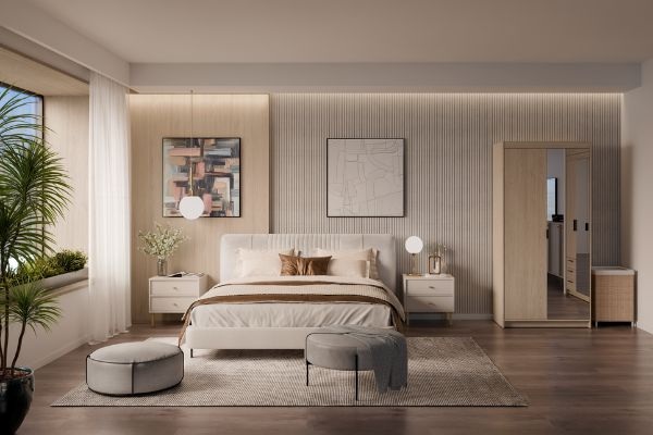 Naturalny dekor dąb olejowany nadaje wnętrzu ciepły, nowoczesny charakter, a minimalistyczna forma sprawia, że szafa łatwo dopasuje się do różnych aranżacji – od skandynawskich po nowoczesne.