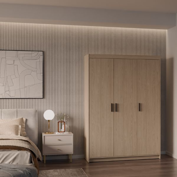 Dzięki pojemnemu wnętrzu z półkami i drążkiem na ubrania, szafa Elena 3D pomoże Ci utrzymać porządek i harmonię w sypialni, przedpokoju lub pokoju młodzieżowym.