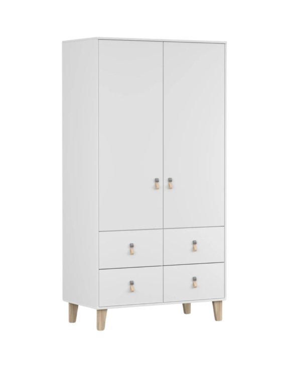 | Szafa Figo 4S2D – biała z drewnianymi nogami i skórzanymi uchwytami | 1149 zł |