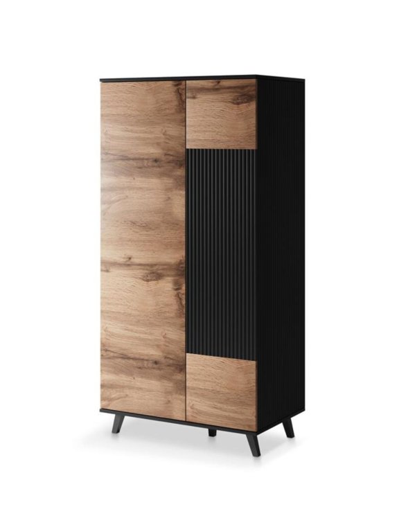 Szafa Random S-1 marki Halmar to ponadczasowy mebel wyróżniający się uniwersalną kolorystyką dąb wotan w połączeniu z klasyczną czernią.