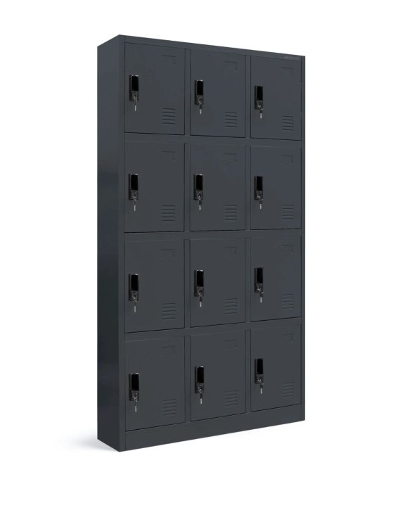 Szafa posiada 12 skrytek, z czego każda zamykana jest na ryglowany zamek. Do każdego z zamków dołączono dwa kluczyki.