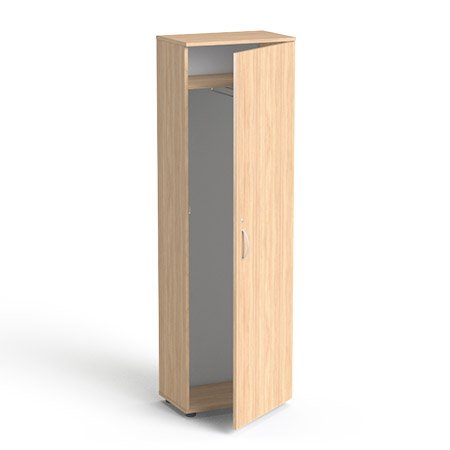 Szafka biurowa z jedną stałą półką i wysuwanym wieszakiem.