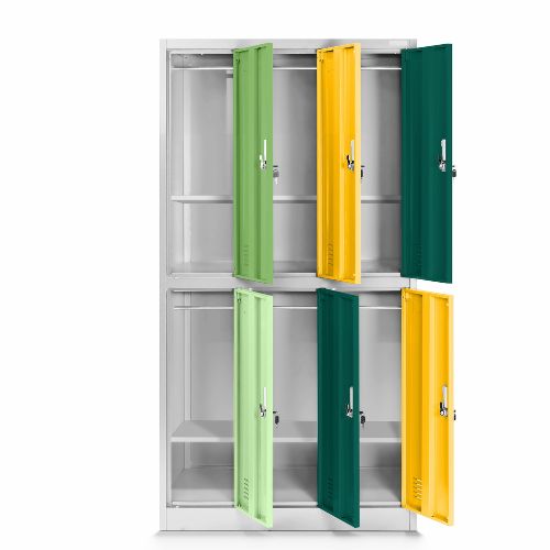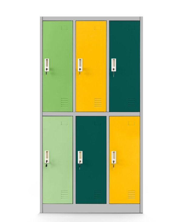 Model Igorek to szafa skrytkowa z sześcioma niezależnymi schowkami rozmieszczonymi w dwóch rzędach, co pozwala efektywnie wykorzystać dostępną przestrzeń i zapewnia każdemu użytkownikowi własną, zamykaną skrytkę.