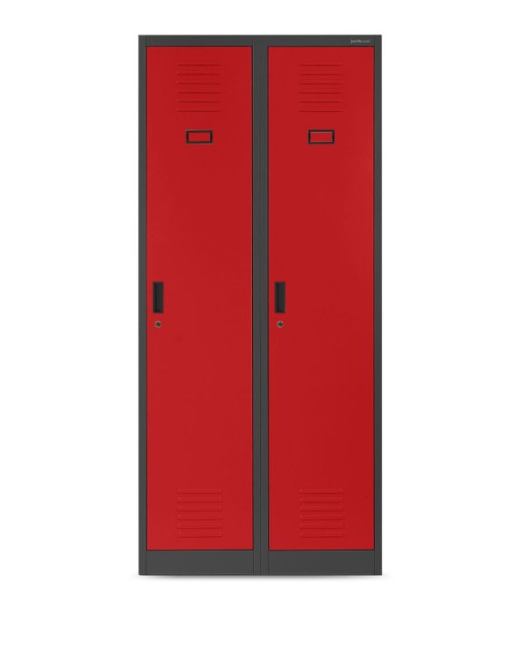 Szafa ubraniowa Kacper marki Jan Nowak w kolorze antracytowo-czerwonym doskonale uzupełni wnętrze socjalne dla pracowników i
