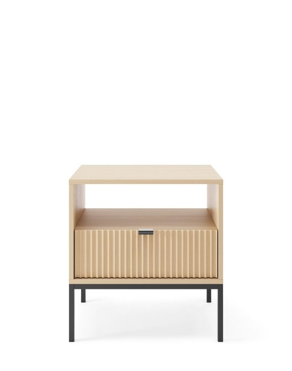 Szafka nocna Nova dąb Vincenza (S54) z czarnym stelażem marki Piaski to elegancki i funkcjonalny mebel, który doskonale sprawdzi się w sypialni.