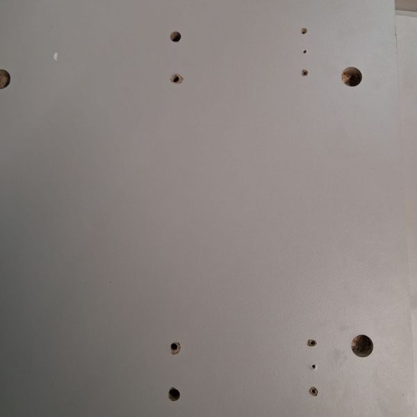 Szafka posiada ślady montażu,przetarcia i obicie na rogu. Zdjęcia poniżej: