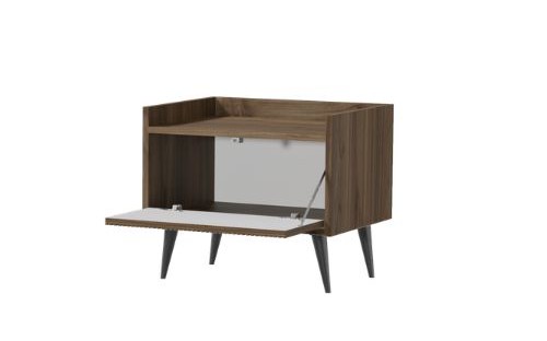 Szafka nocna Ademo w kolorze orzecha to wyjątkowe połączenie ponadczasowej elegancji z nowoczesnym designem. Jej ciepły, naturalny odcień drewna wprowadza do wnętrza przytulność i harmonię, a minimalistyczna forma sprawia, że doskonale odnajduje się zarówno w aranżacjach nowoczesnych, skandynawskich, jak i loftowych.