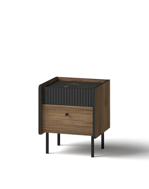 Szafka nocna z szufladą P12 polskiej marki Dolmar należy do kolekcji Prestigo, która wyróżnia się wyrafinowaniem i praktycznością.