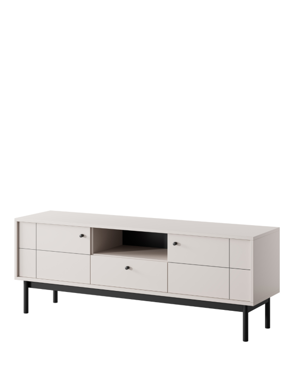 Szafka pod telewizor Japandi (RTV154) w kolorze kaszmiru marki Piaski to elegancki i funkcjonalny element wystroju wnętrza, łączący estetykę stylu japandi z praktycznym designem.