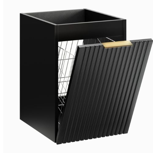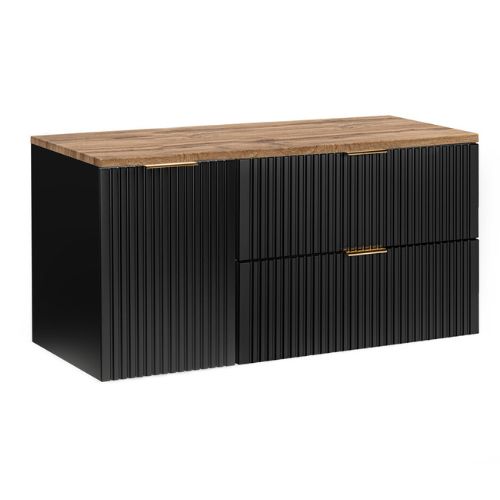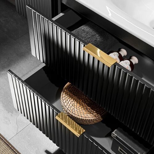 Szafka z kolekcji Adel Black urzeka nowoczesną formą, subtelnymi ryflowaniami i eleganckim wykończeniem w czarnym kolorze.