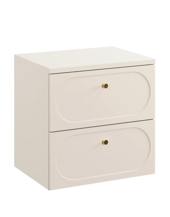 Dzięki podwieszanej formie, szafka nie tylko prezentuje się wyjątkowo lekko, ale również ułatwia utrzymanie porządku w łazience – przestrzeń pod nią można bez problemu wyczyścić lub pozostawić jako miejsce na dekoracyjny kosz czy wagę łazienkową.