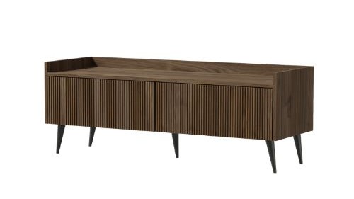 Szafka RTV 121 cm w kolorze orzech nadaje przestrzeni elegancji i harmonii, a charakterystyczne frezowane fronty przyciągają uwagę w subtelny, nienachalny sposób. To mebel, który nie dominuje aranżacji, ale doskonale ją dopełnia.
