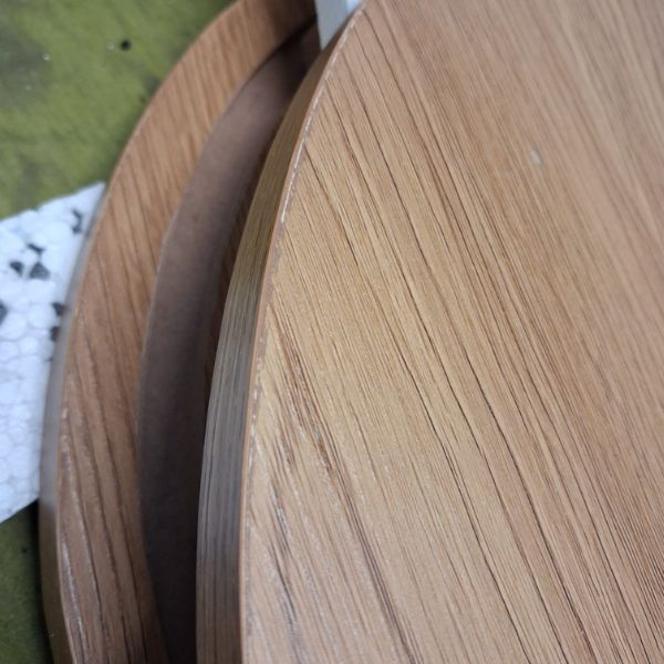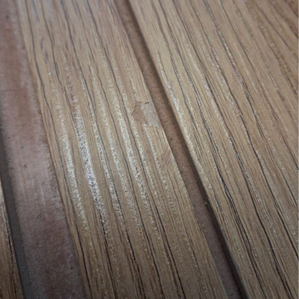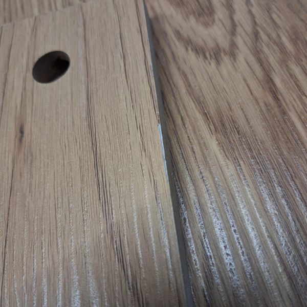Wykonana z płyty wiórowej i MDF, szafka wyróżnia się eleganckim wykończeniem w kolorze dzikiego dębu oraz charakterystycznymi ręcznie wycinanymi lamelami, które nadają jej unikalny, artystyczny wygląd.