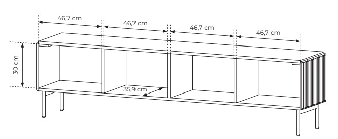 Szeroka szafka rtv ryflowana kaszmirowa Muti E 195 4D