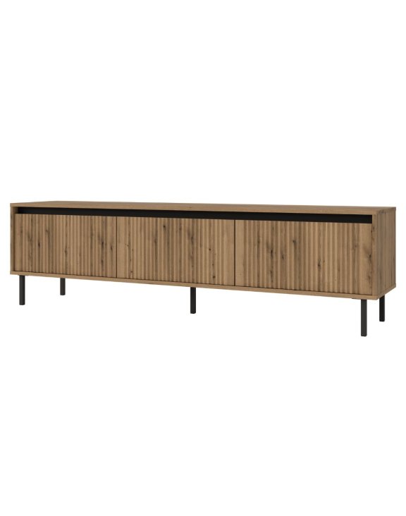 Szafka RTV Osaka zachwyca subtelną formą urozmaiconą pionowymi frezami na frontach, które dodają jej charakteru i głębi.