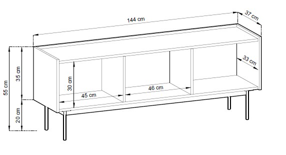 Za trzema frontami znajdują się pojemne półki, które zapewniają wystarczająco dużo miejsca na sprzęt multimedialny, kable, płyty czy inne akcesoria. Układ półek ułatwia organizację i utrzymanie porządku w strefie RTV.