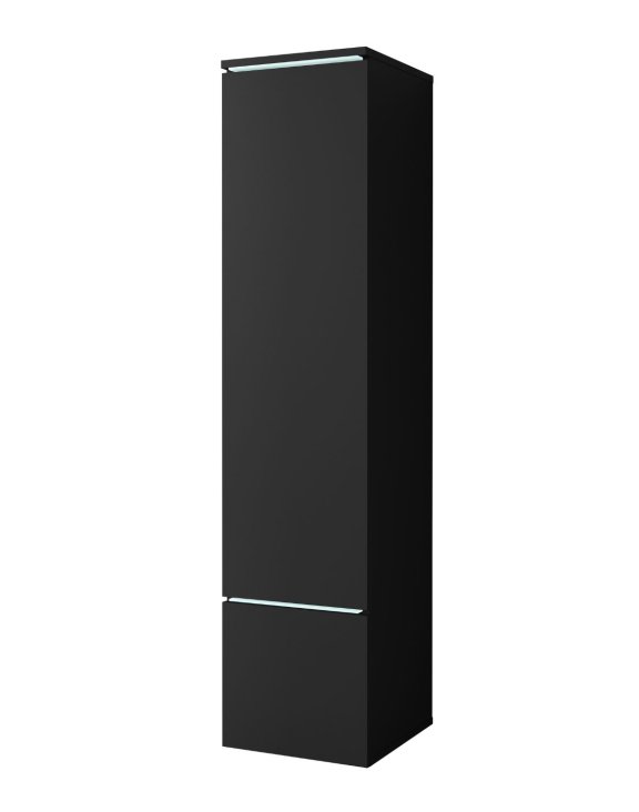 Szafka wysoka Vera LED wyróżnia się smukłą, wysoką bryłą, dzięki czemu świetnie sprawdza się nawet w mniejszych przestrzeniach. Gładkie fronty bez uchwytów podkreślają minimalistyczny charakter mebla.