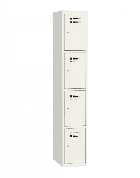 Seria SUS W 314 marki Malow to metalowe szafki z czterema skrytkami na rzeczy osobiste w jednym module.