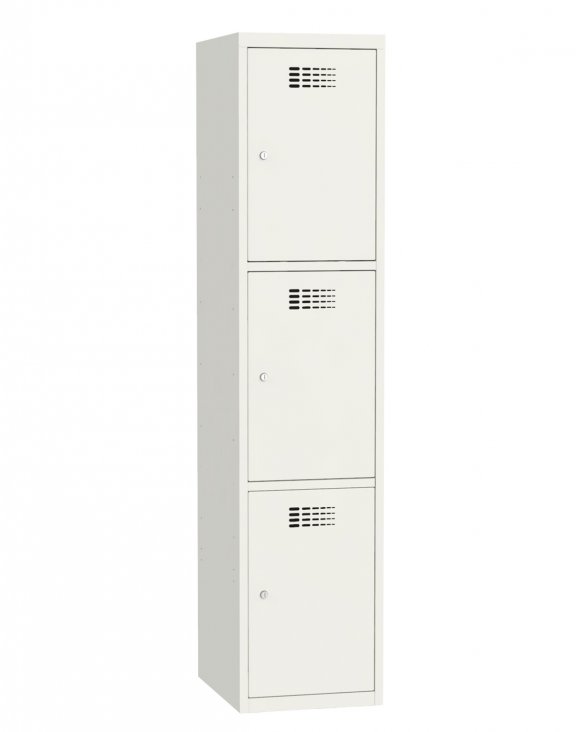 Szafki z 3 skrytkami w jednym pionie z serii SUS W 413 marki Malow pozwalają na bezpieczne przechowywanie pozostawionych w nich przedmiotów.