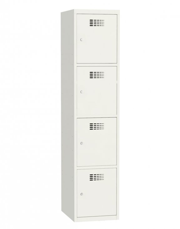 Metalowe szafki z czterema komorami na ubrania w jednej kolumnie z serii SUS W 414 marki Malow.