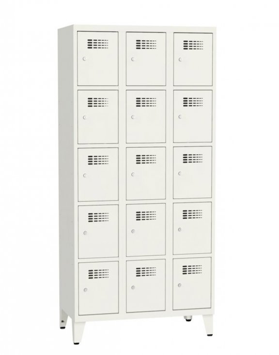 Metalowa szafa z piętnastoma komorami w trzech modułach z serii SUS 335 marki Malow.