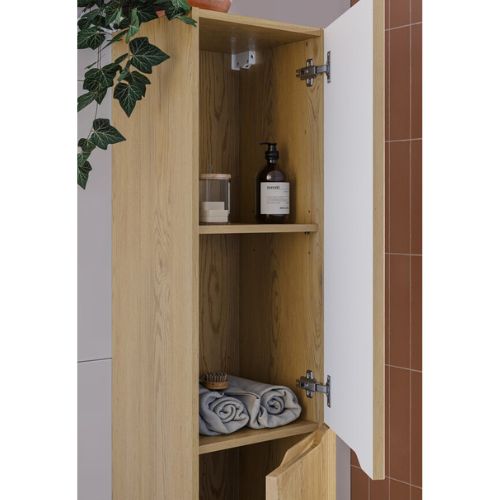 Wysoka szafka łazienkowa jest doskonały rozwiązaniem do przechowywania kosmetyków, ręczników czy innych akcesoriów łazienkowych.