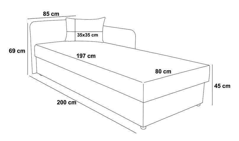 Jednostronny boczek oraz miękki zagłówek zwiększają komfort codziennego użytkowania – zarówno podczas snu, jak i odpoczynku w ciągu dnia.