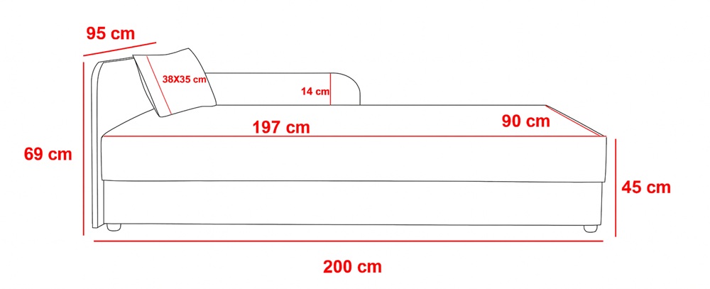 pełnowymiarowa powierzchnia spania 90 × 195 cm